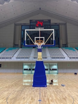 令和4年度スポーツ振興くじ助成金を活用して、山形市総合スポーツセンターに移動式バスケットゴール1対を購入しました。