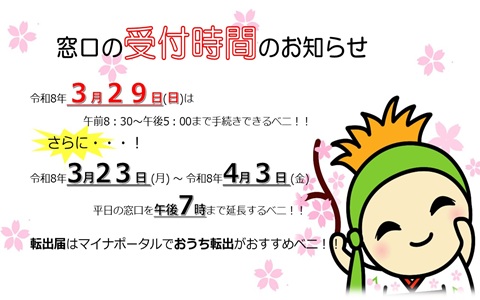 窓口の受付時間のお知らせ