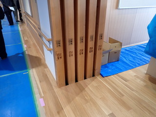 山形市産材は5つある建物のうち、式典が行われた場所であり雑貨店やオフィシャルショップが入る建物の梁や柱、床材に使われました。内部は梁や柱があらわになった構造になっていて、完成後も各木材の産地の刻印を見ることができるようになっています。