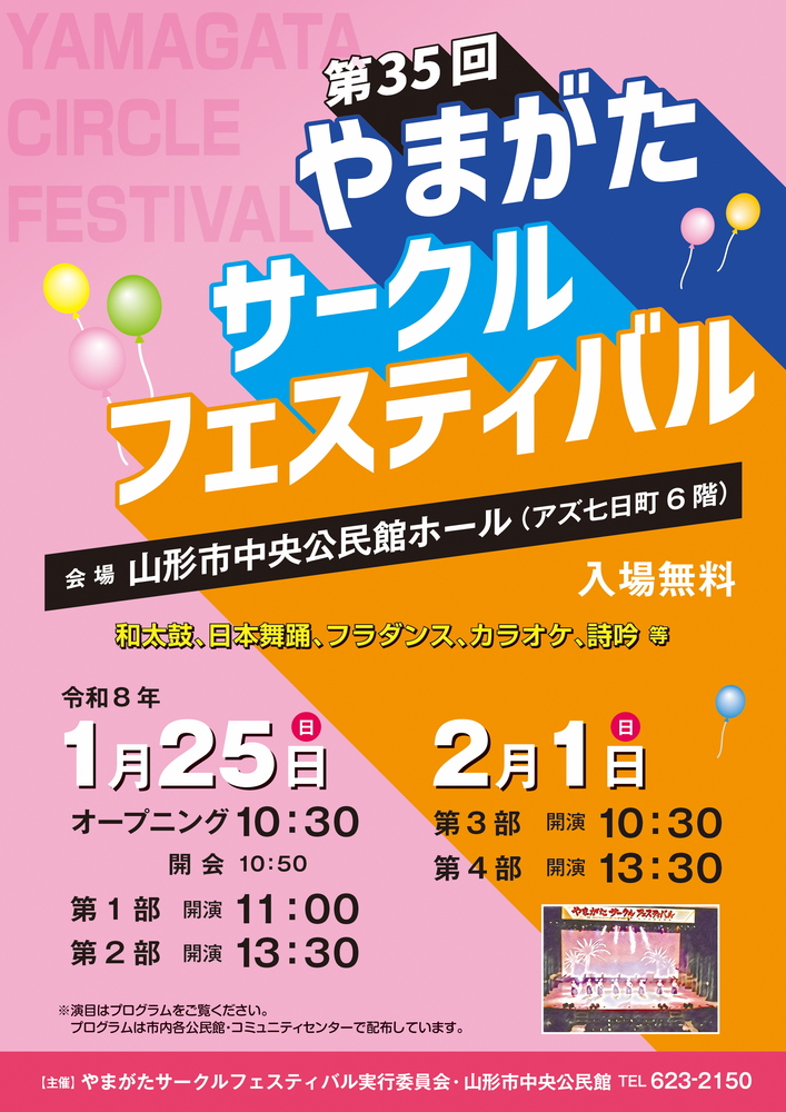 中央公民館ホールで、日頃、各公民館やコミュニティセンターで活動しているサークルの皆さんによる成果発表を観てみませんか?